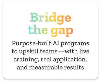 We’re not just training your employees—we’re partnering with your L&D team. You get frameworks, materials, and guidance to sustain AI learning long after our program ends.